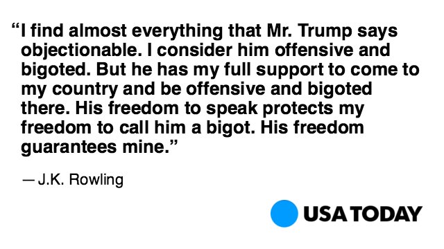 who the hell cares what JK rolling says, she is irrelevant to us politics, keep your own house in order miss