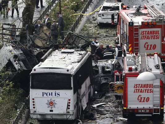 11 people killed after bomb explodes near bus carrying riot police in #Istanbul http://usat.ly/215k6qg  (Photo: epa)pic.twitter.com/35b4IkxXuL