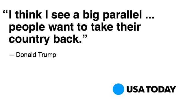 @USATODAY: Donald Trump compares#Brexit to his campaign: http://usat.ly/28UWCVe pic.twitter.com/70AQcOGW3i” We see how this is going right.