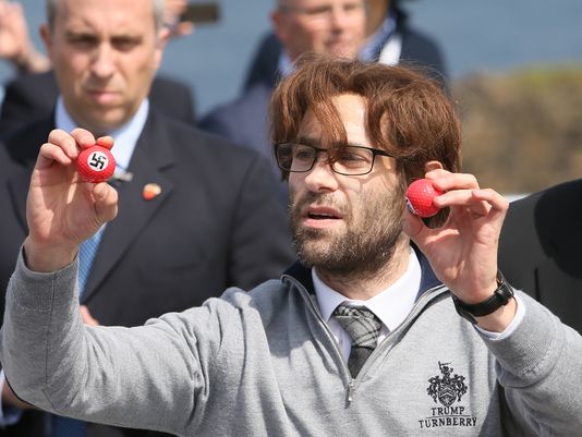 maybe the people throwing the red golf balls with swastikas on them are racist?