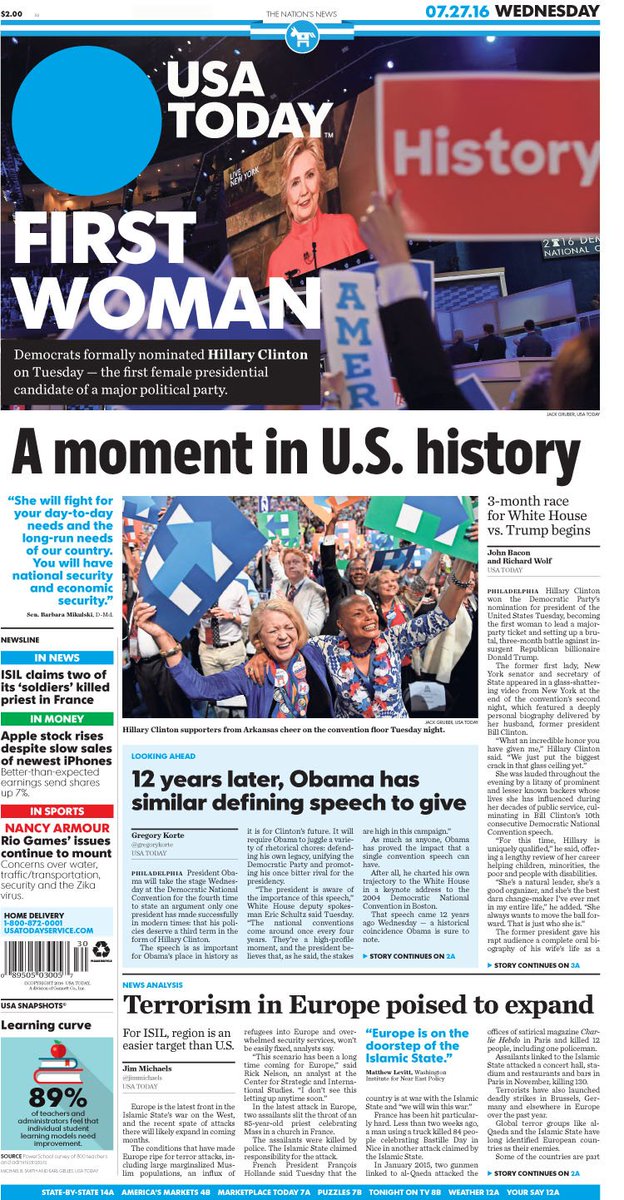 No surprise that the mainstream media pushes a horrific terror attack in France to bottom of the page in favor of Hillary.