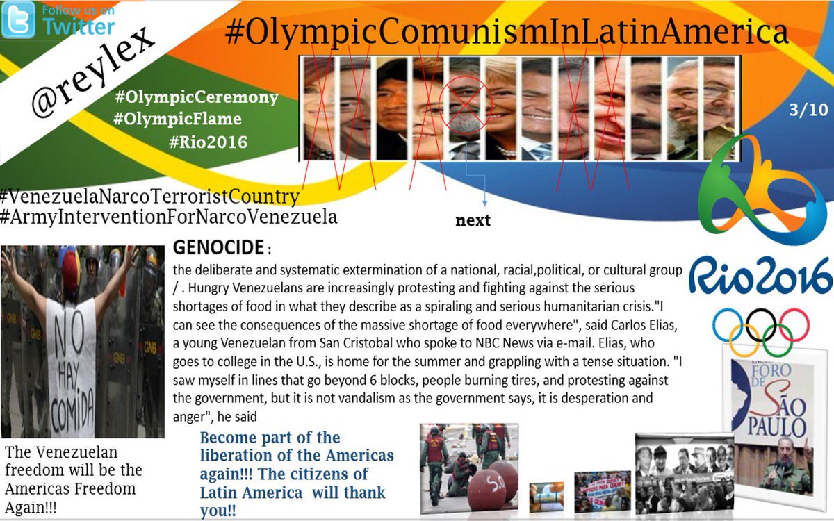 #5Ag 3/10 #Rio2016 #OpeningCeremony GENOCIDE IN #VEN BY CASTRO-MADURO pic.twitter.com/gi89ElGORgpic.twitter.com/kNnI5DOz5O