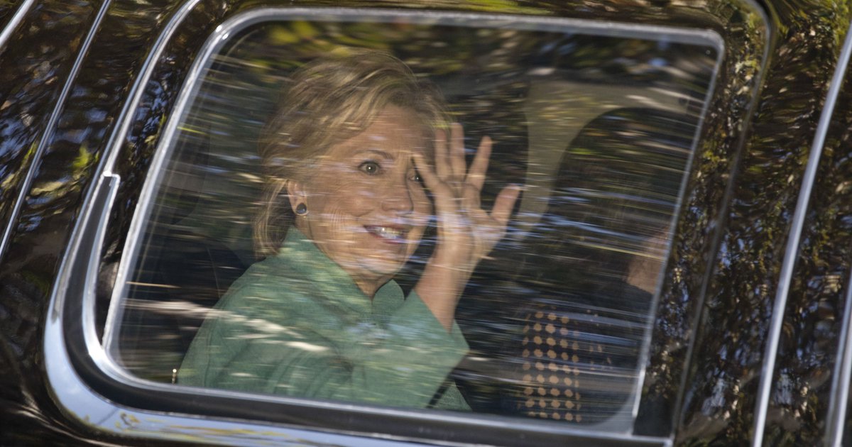 Many Americans fight every day to have food to feed family-Clinton in limousine waving as she leaves big lunch-fund raising event