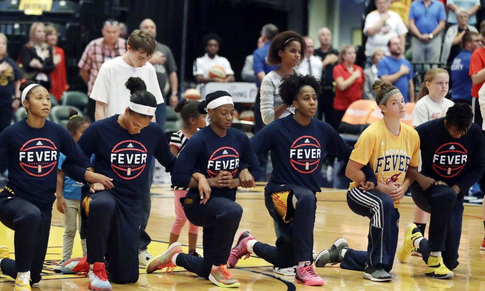 : The entire Indiana Fever team locked arms and kneeled for the national anthem: http://usat.ly/2cIniaH pic.twitter.com/6T7RcLIuDm
