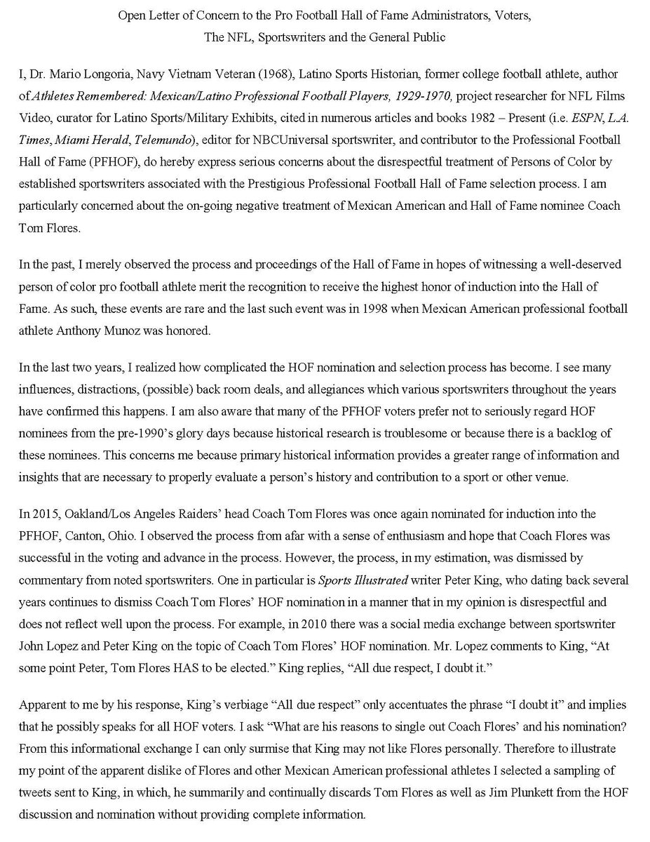 Historian's Open Letter to NFL & ProFootball Hall Of Fame 4 Pages