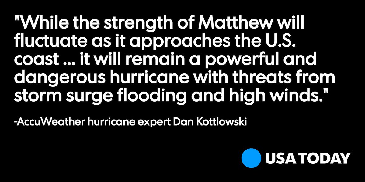 Hurricane Matthew is expected to gain strength as it heads towards Florida: http://usat.ly/2dGXBZP pic.twitter.com/TMquiAfKcq