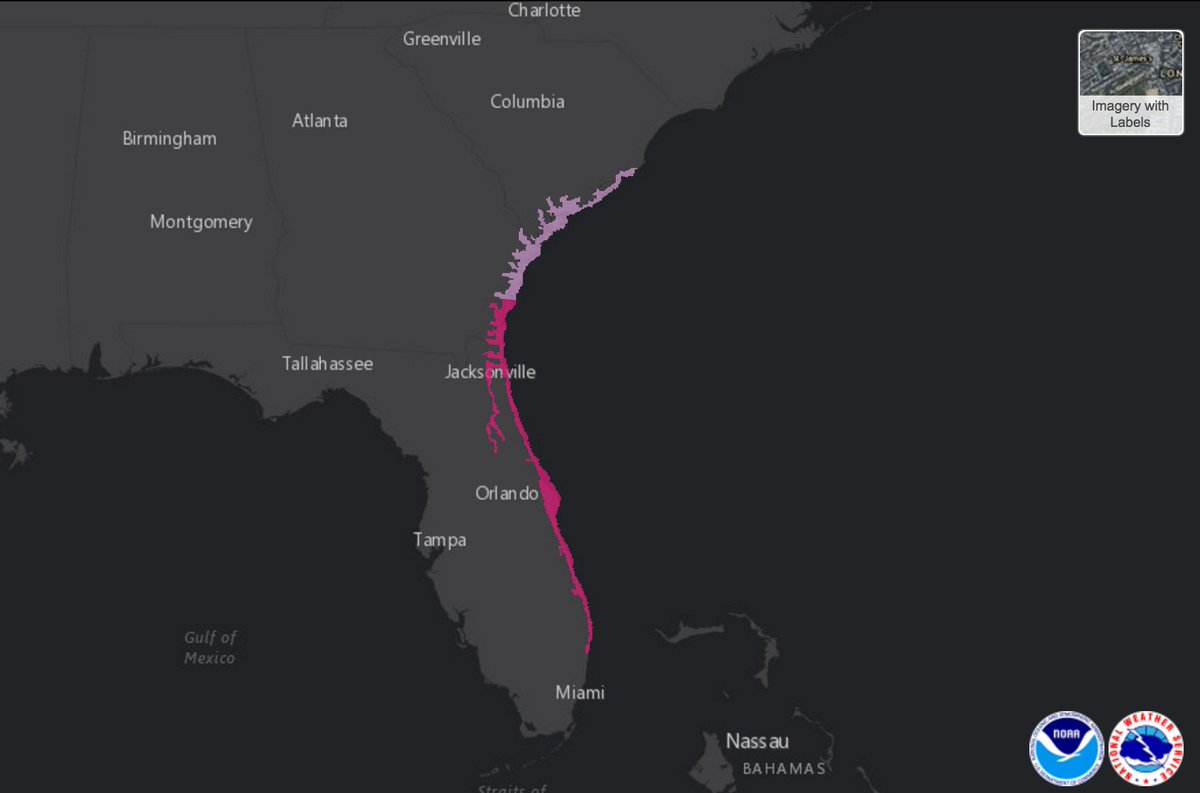 The 5 a.m. prototype storm surge watch/warning area extends from Fla. to S.C. for #Matthew: http://usat.ly/2dGXBZP (via @NHC_Atlantic)pic.twitter.com/qzdiTCItMU