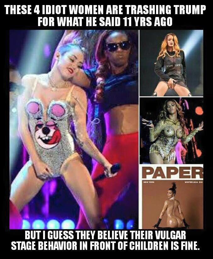 yet she invited rappers to the WH whose lyrics are 100x's more degenerate than anything Trump said. Plus kids listen to that crap.