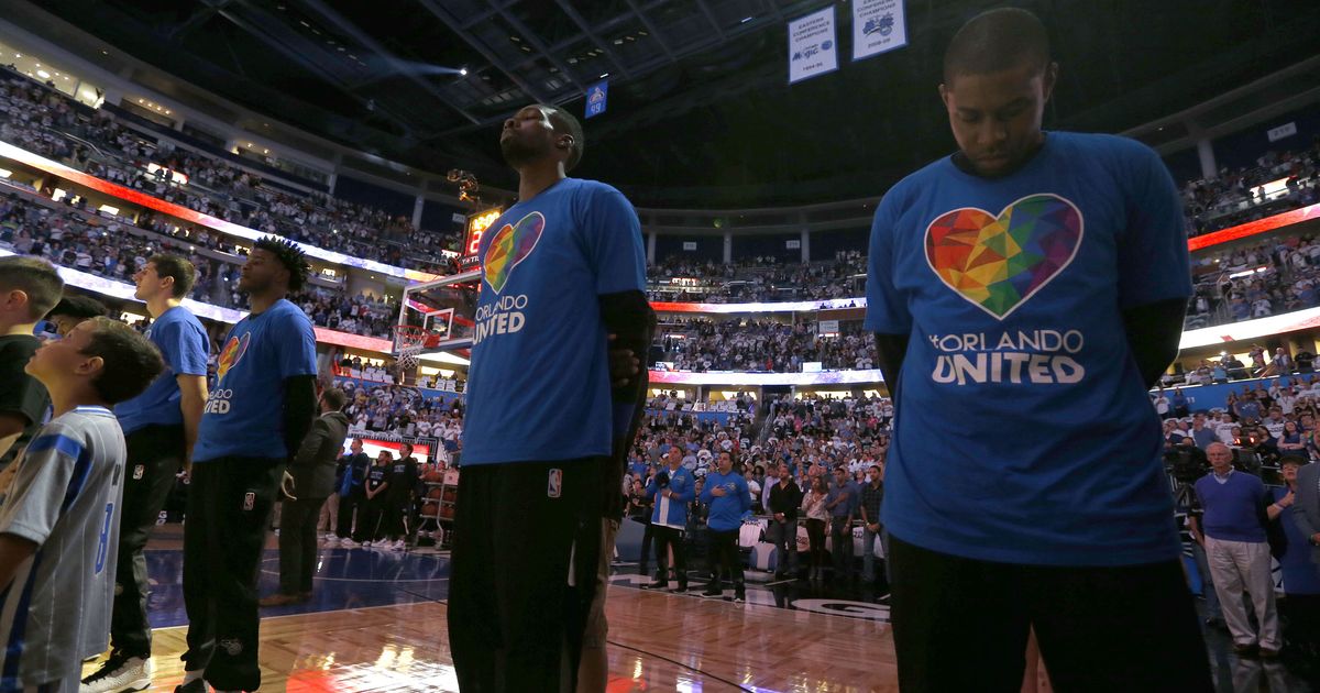 Magic raise banner for Orlando nightclub shooting victims on opening night http://usat.ly/2ecHpNh pic.twitter.com/AFeCEqh5ol