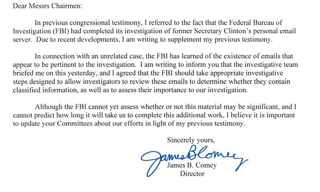 #Election2016 OpEd: Did@FBI Provide Extra Details To Trump? Ltr Doesn't State They Are Looking At#Clinton eMails Just eMails