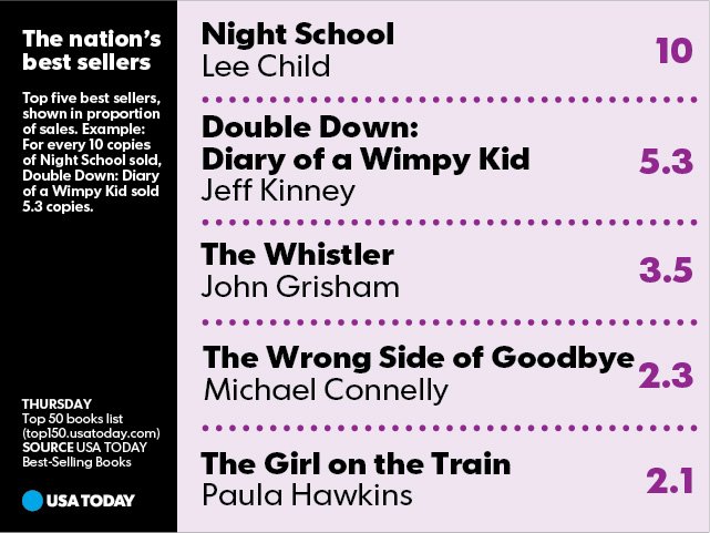 Lee Child is on top of USA TODAY's best seller list. http://usat.ly/2ghAI0L pic.twitter.com/Dl2dV7QvzT