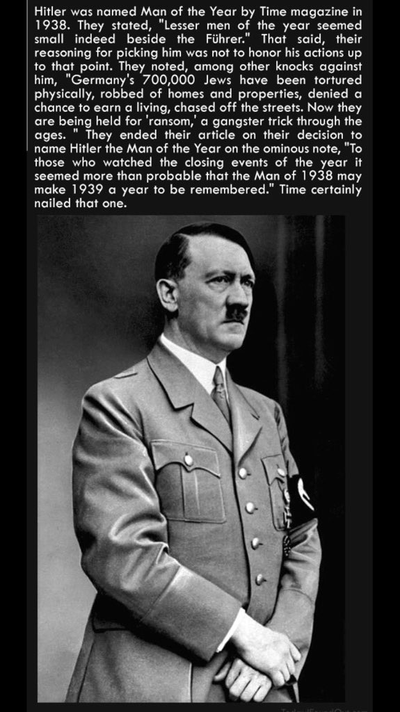 He is in good company with Adolf Hitler as the person of the year at Time.