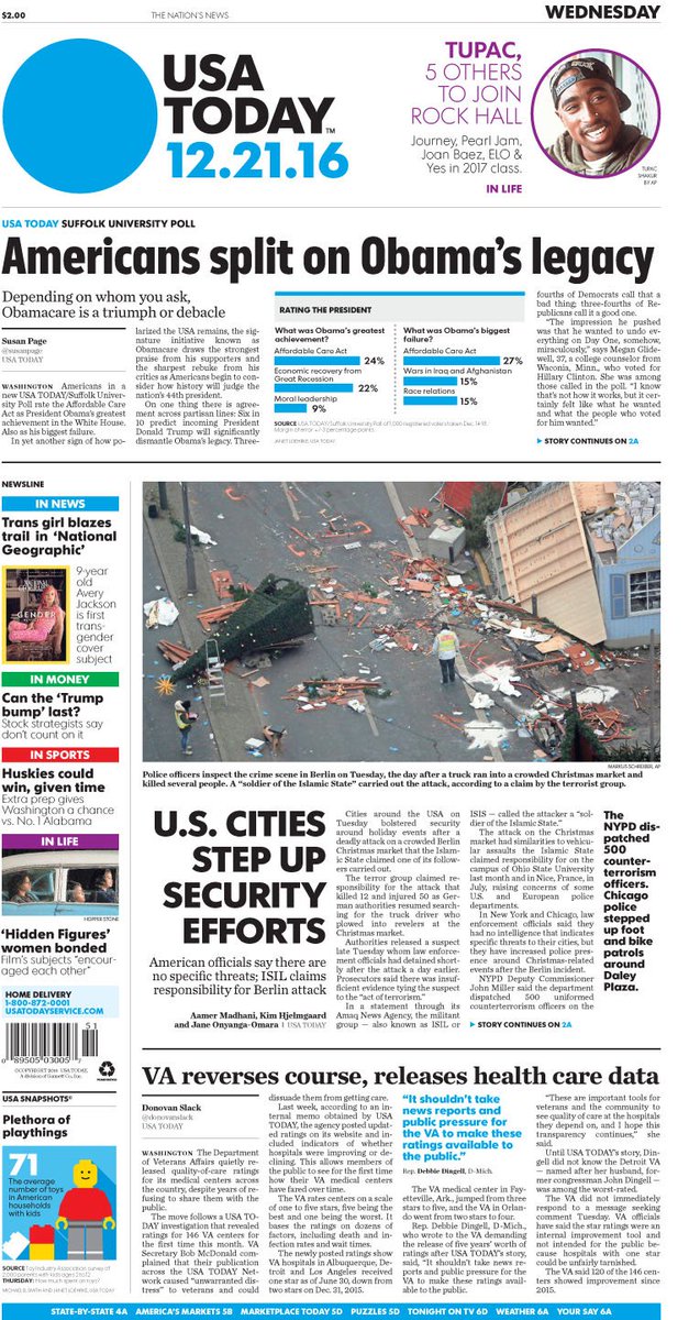 A look at Wednesday's paper: #Tupac, @PearlJam, 4 others join @rockhall; @DeptVetAffairs reverses course, releases quality-of-care ratingspic.twitter.com/tajIoHbFlp
