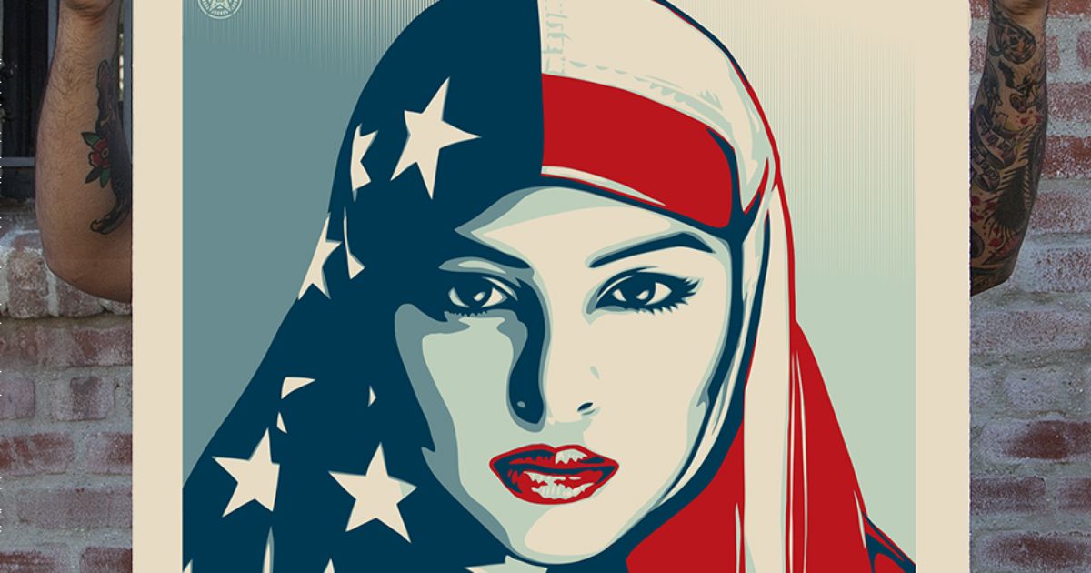 Representing a symbol of freedom "the american flag" with a tool of oppression "the hijab", only a libtard can think that way.
