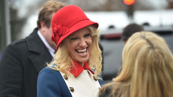 Kellyanne is modeling the Pan Am retro flight attendant outfit that will be used on Air Force One for this Administration.