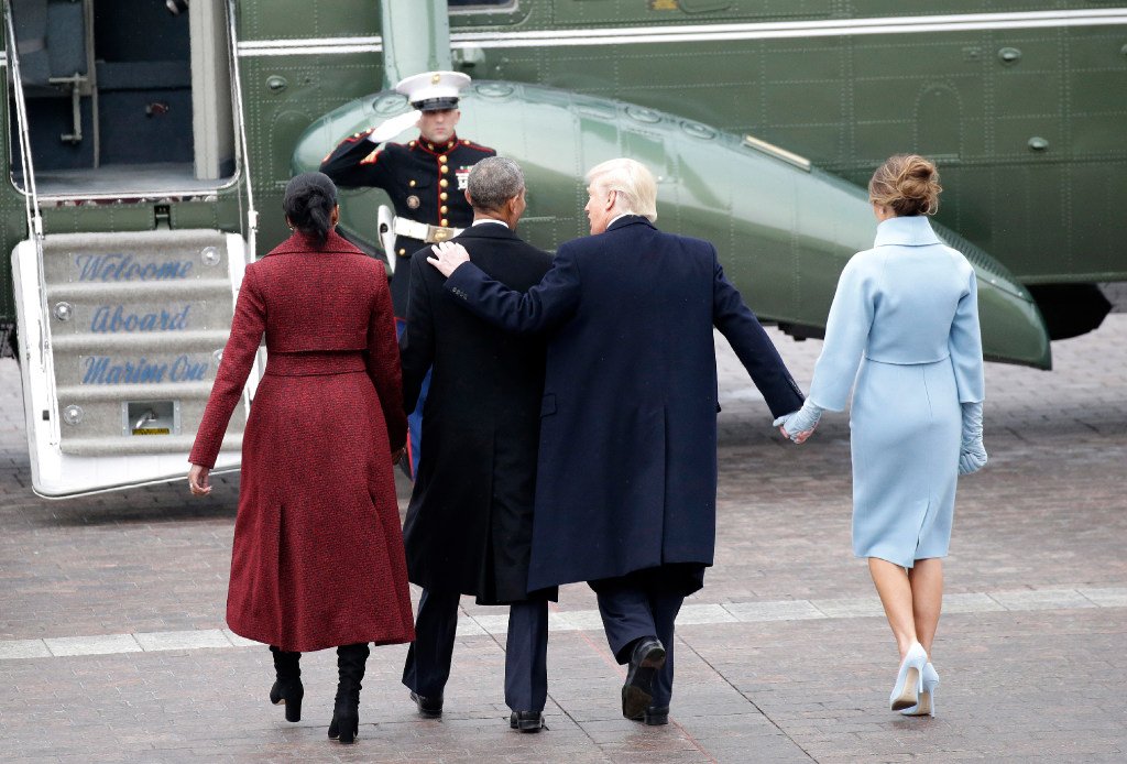 What a goodman Obama is! He didn't shake off Trump's hand on his shoulder! UGH