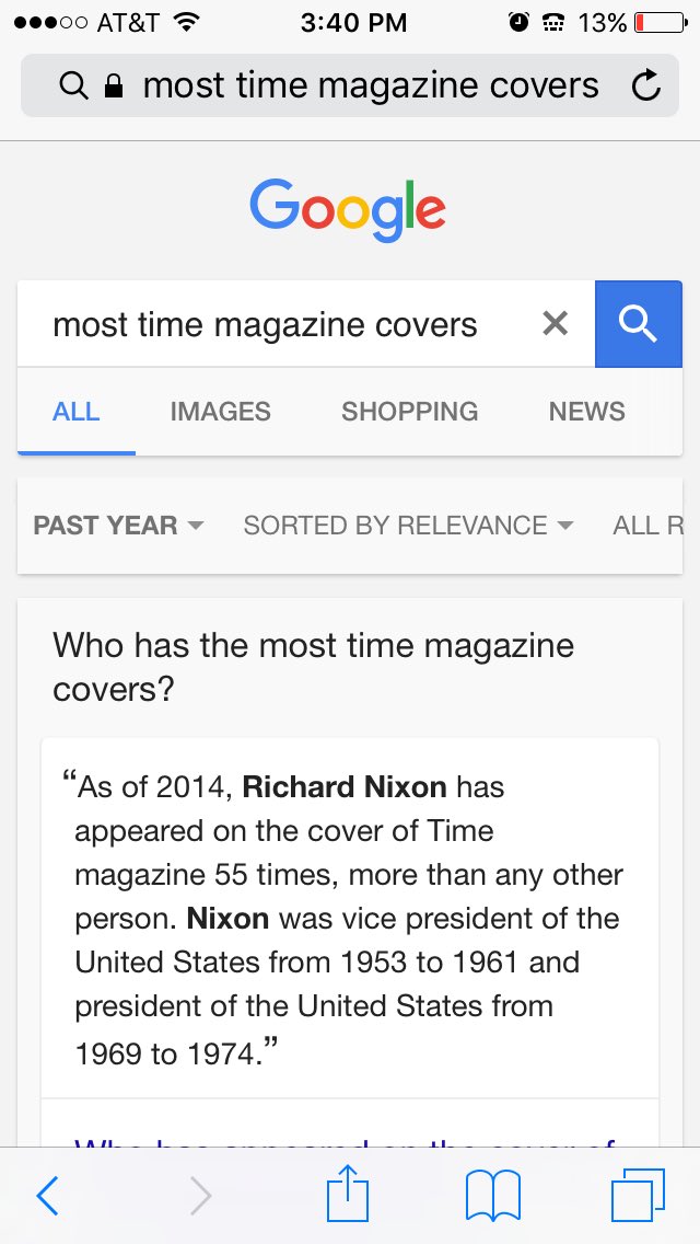 @DanWolken wrong. Time Magazine already put out that it was Nixon who was on cover 19 timesThanks. Twitter will use this to make your timeline better. UndoUndo