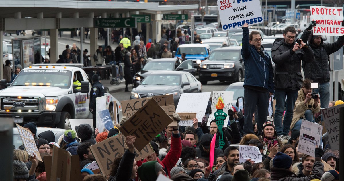 one was a us born citizen, the other from a country not on the banned list.