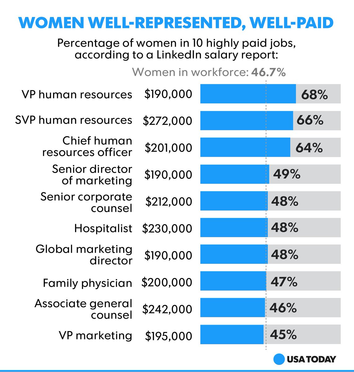 Among the highest-paid roles, only three of them employ more women than men — all within HR roles: http://usat.ly/2oUDgCh #EqualPayDaypic.twitter.com/yiyVFTfvHv