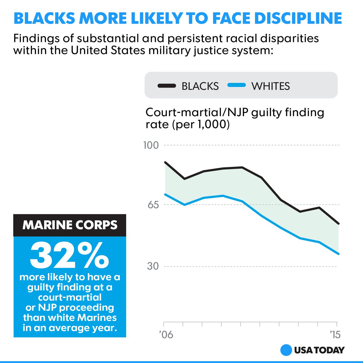 Pentagon data reveals that black troops are twice as likely to be punished by commanders and courts.https://usat.ly/2sfb1n7