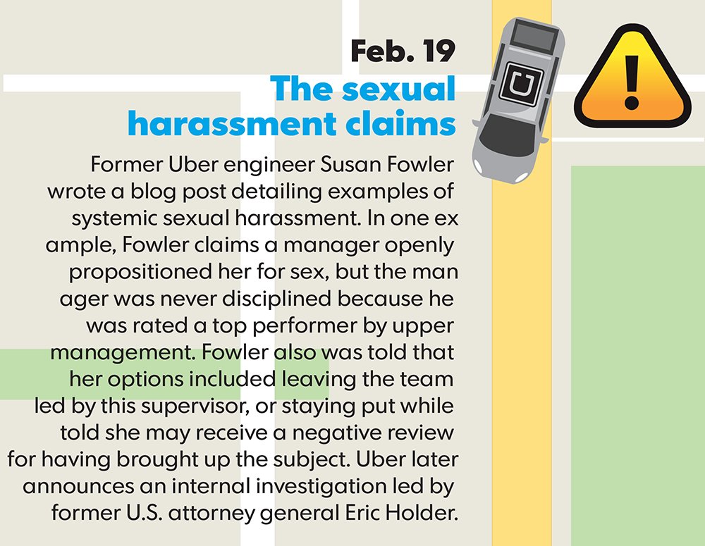 Uber CEO Travis Kalanick exited the company Wednesday after a stormy ride. Let’s look back at the potholes the company’s faced this year.pic.twitter.com/TsuIGFCbqI