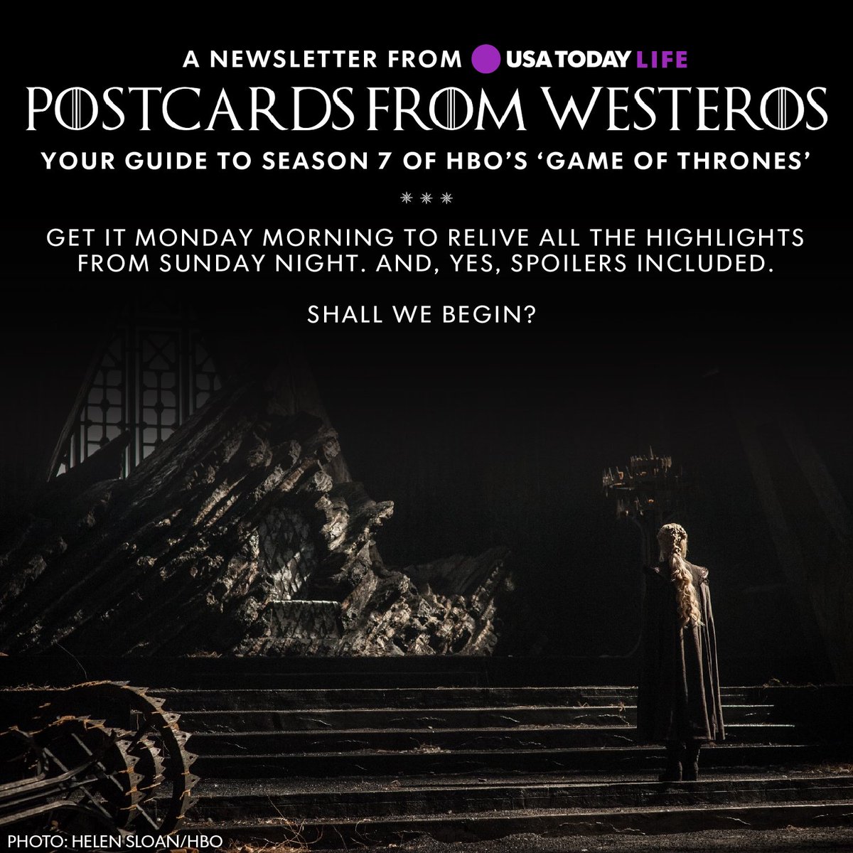Catch up on each episode's highlights and pitfalls in our #GameofThrones newsletter. Shall we begin? http://usat.ly/2u6gsF8 pic.twitter.com/0ujYSiTLGR