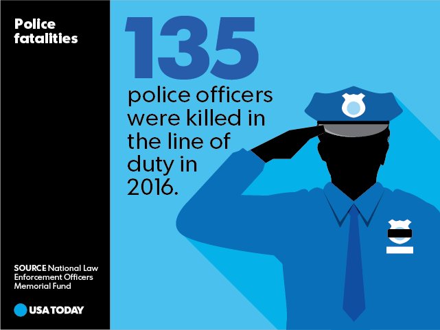 In 2016, 64 police were shot and killed, 53 died in car wrecks, and 18 died of other causes while on the job.