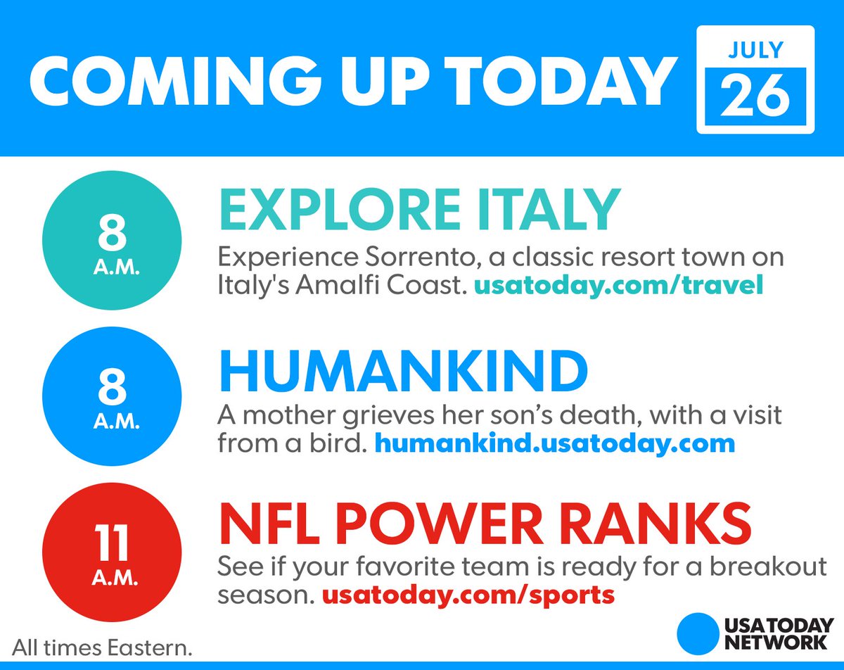 Coming up today from the USA TODAY Network: explore #Italy's Sorrento, check out our #NFL rankings, and more. http://usat.ly/2h081GV pic.twitter.com/RNsoVJgTPK