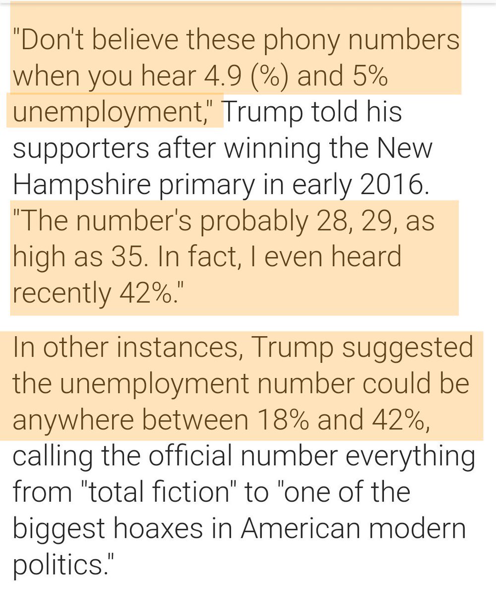 Trump didn't believe unemployment #'s. Said actual rate was 30-40%. This one lying