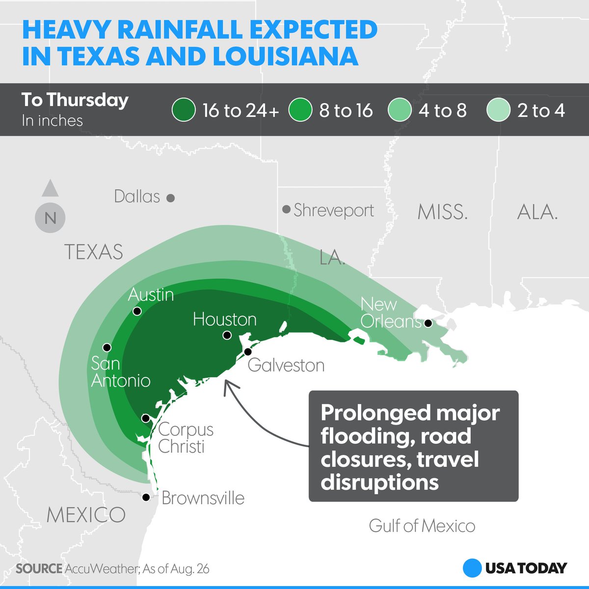 #HurricaneHarvey has been downgraded to a tropical storm, but exactly how much rain will it dump in its path? https://usat.ly/2xllSM0 pic.twitter.com/kh23RmQD8d