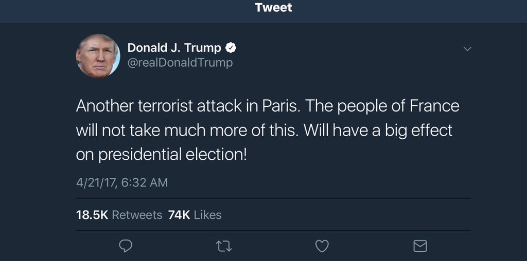@realDonaldTrump@SenSchumer@NancyPelosi wonder what the Donald has to say about the need for gun controls. He said a lot about France