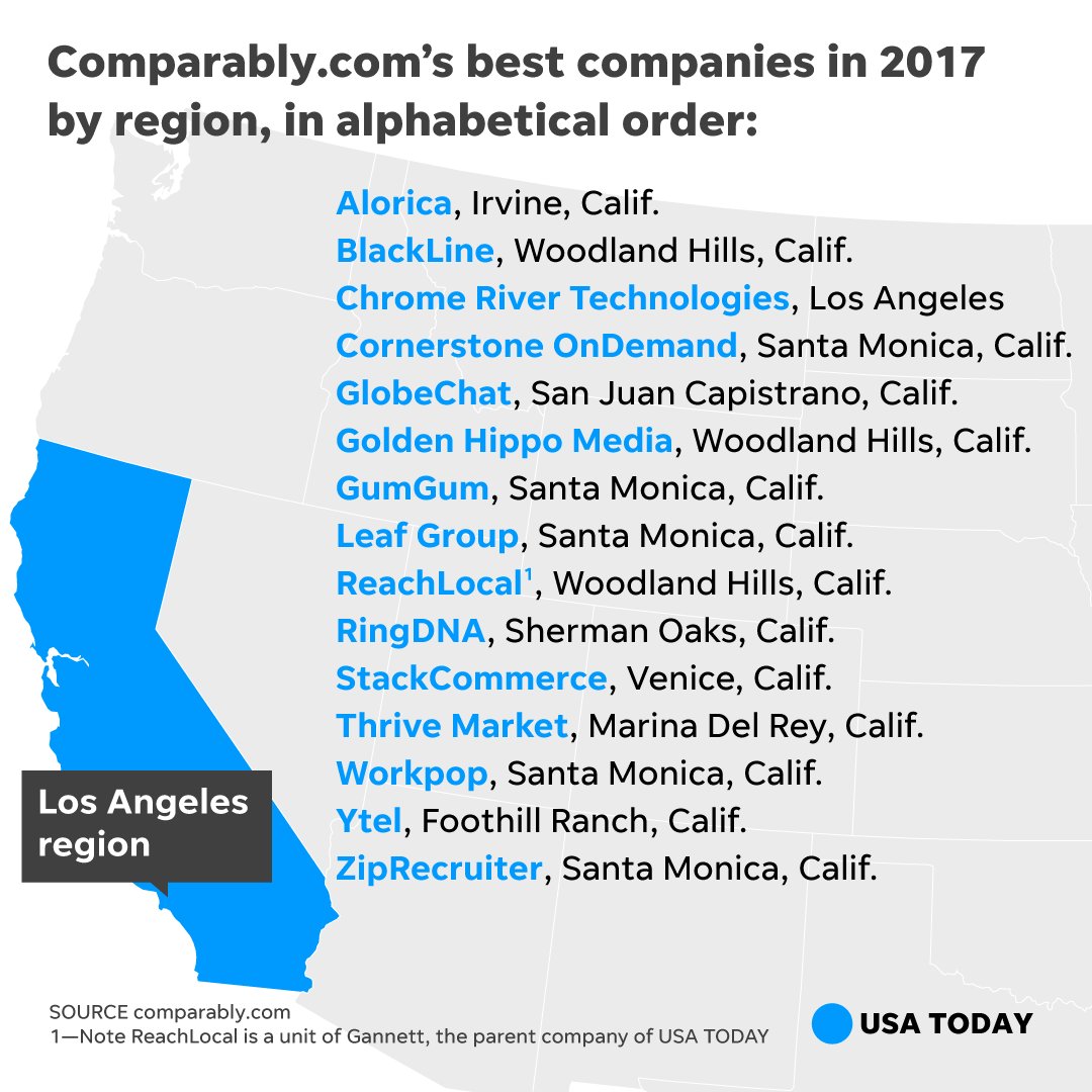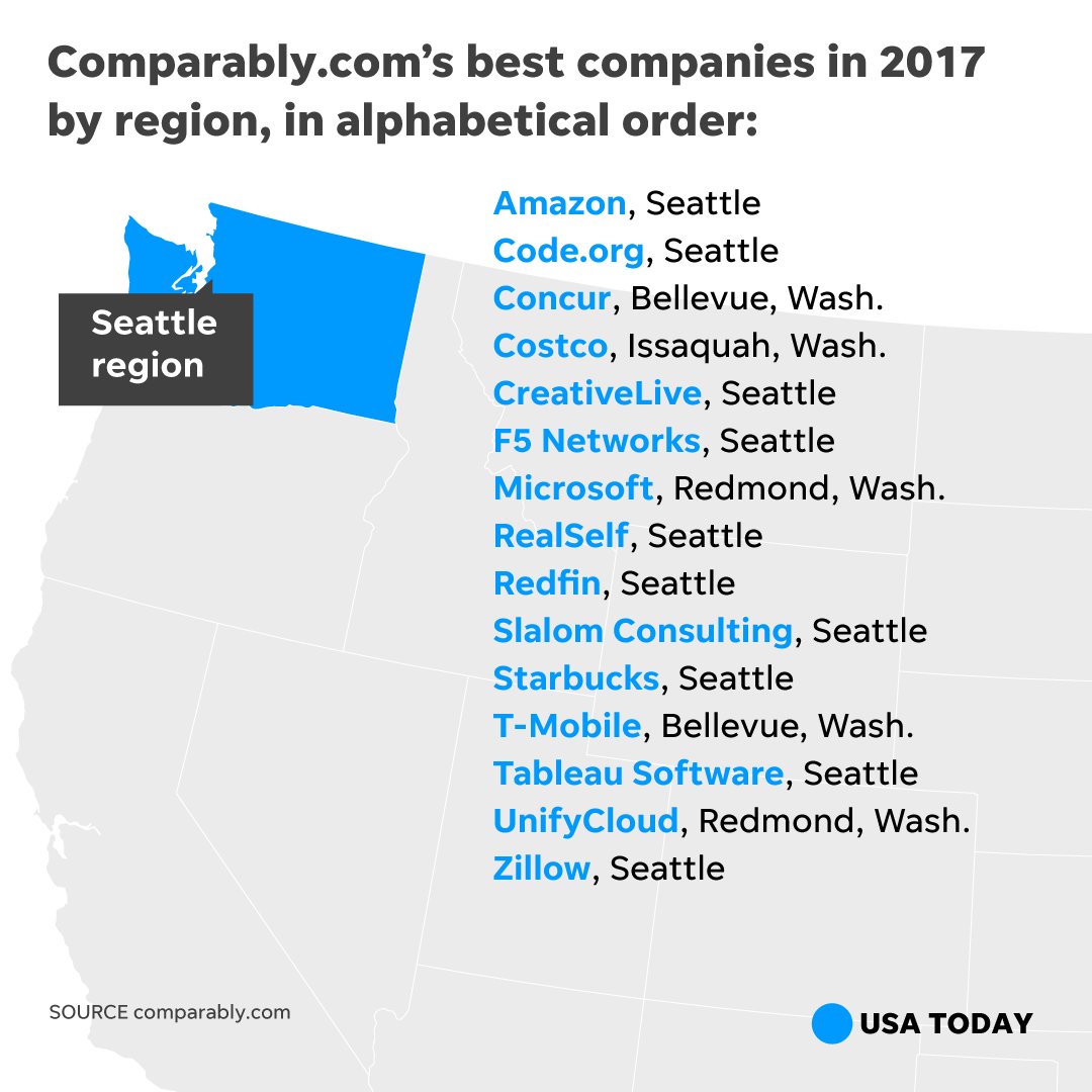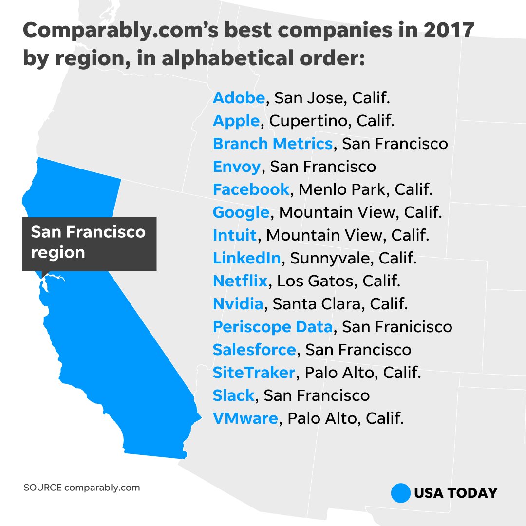 Here are top places to work for by region. If you work in one of these metro areas, check if your company is on the list. https://usat.ly/2Aff8Dv pic.twitter.com/FbL99ziJGx