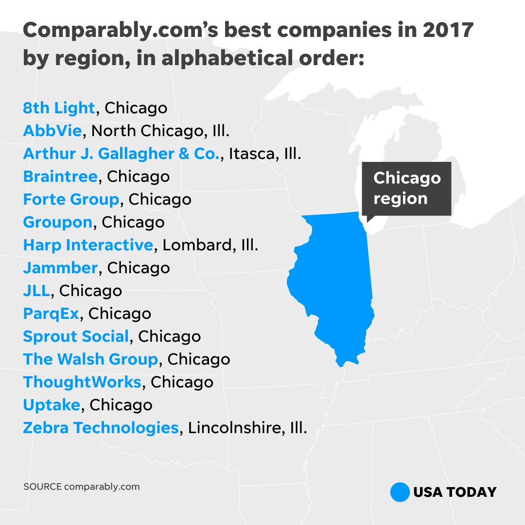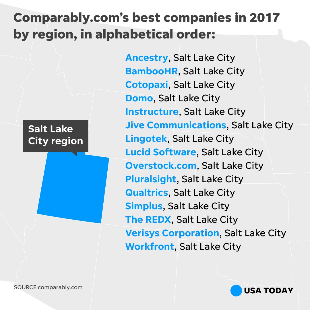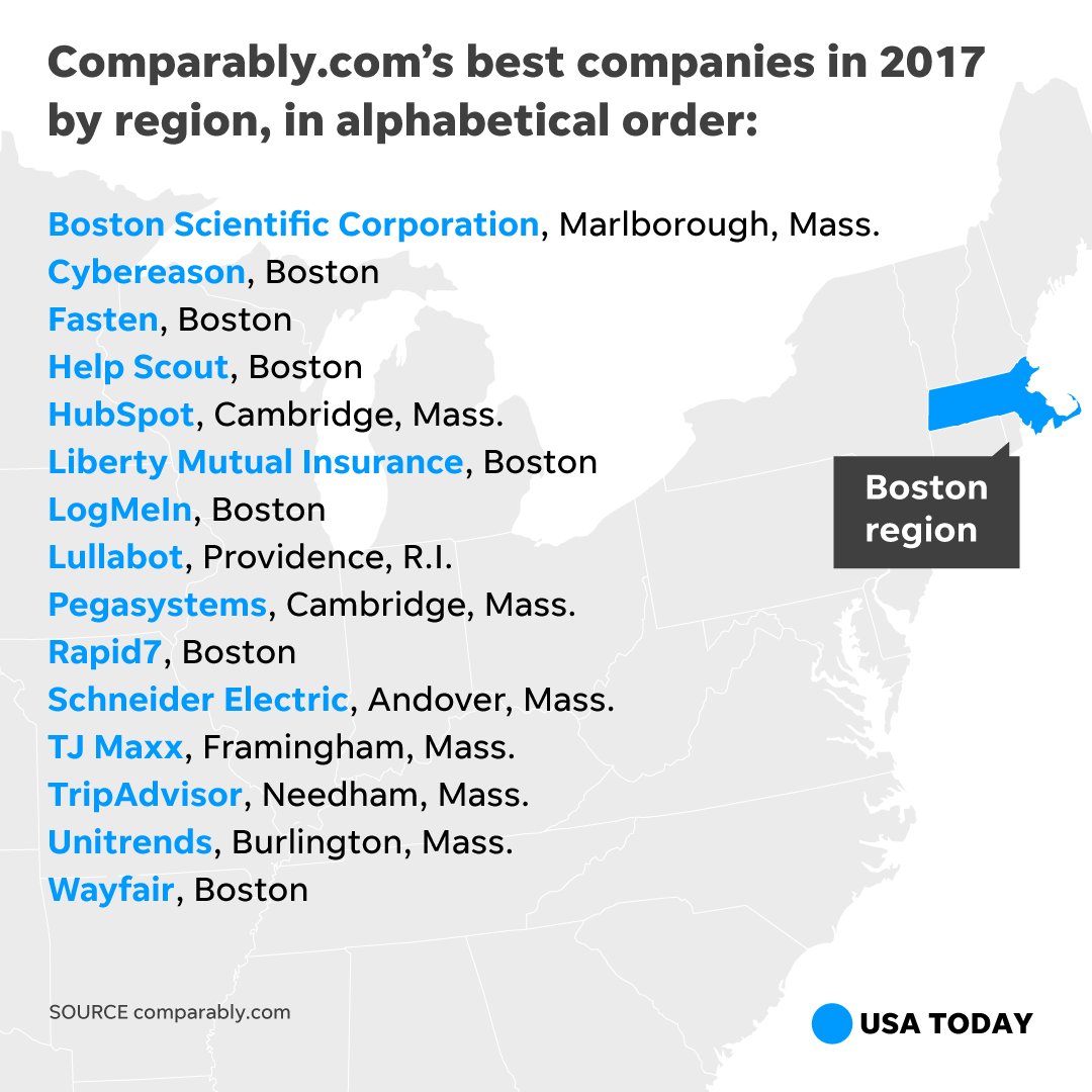 Here are top places to work for by region. If you work in one of these metro areas, check if your company is on the list. https://usat.ly/2Aff8Dv pic.twitter.com/FbL99ziJGx
