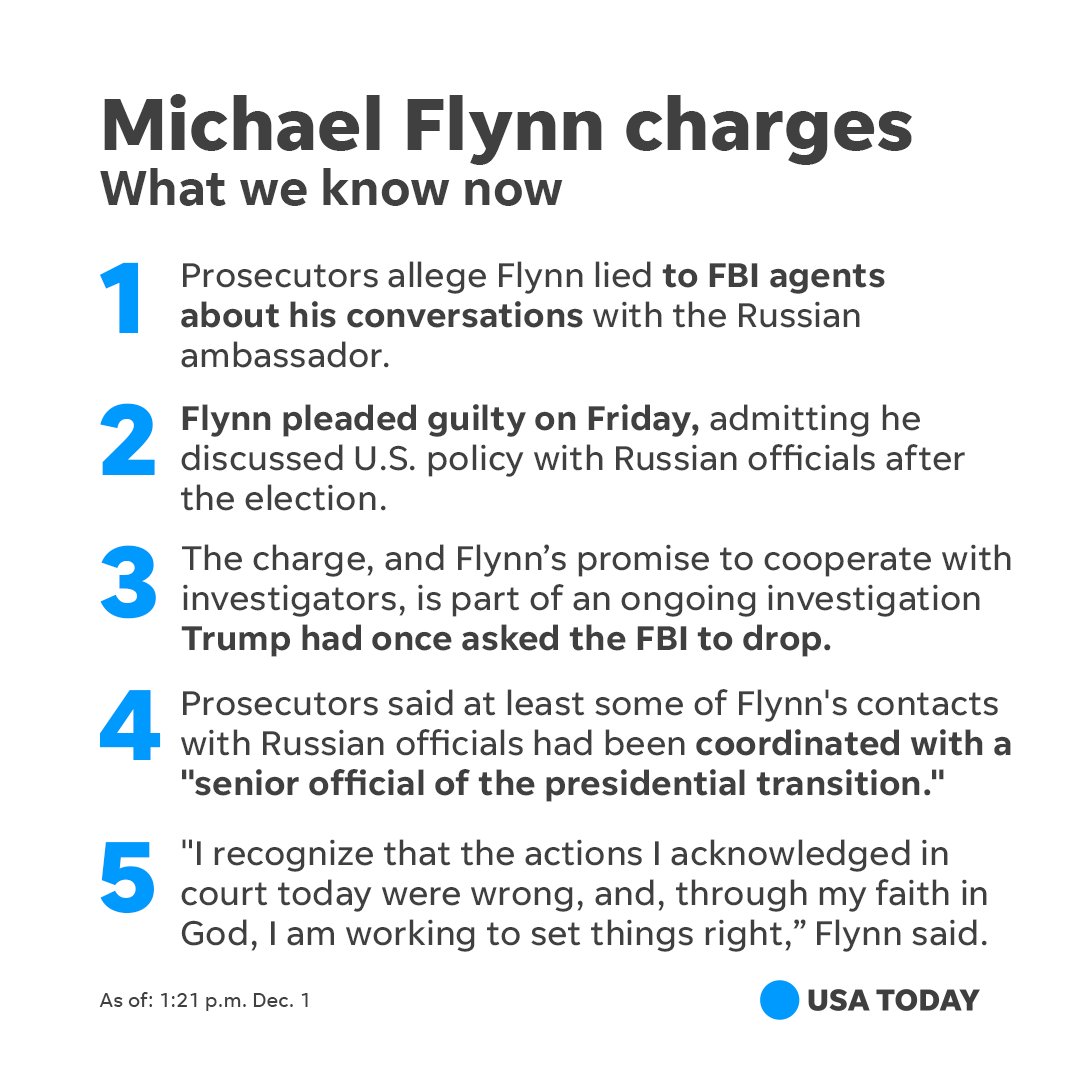 He has been charged with lying to the FBI but nothing else. Him talking with the ambassador is not illegal: https://www.realclearpolitics.com/video/2017/02/15/paul_ryan_it_was_mike_flynns_job_description_to_talk_to_foreign_ambassadors.html# …!