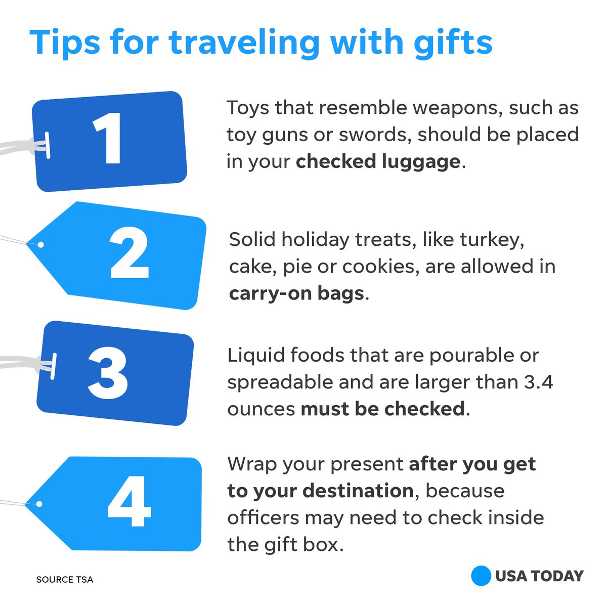 A few simple guidelines for making traveling with gifts easier. (You're bringing turkey on the plane?!) https://usat.ly/2AAmdMe pic.twitter.com/ffWWdzlnvt