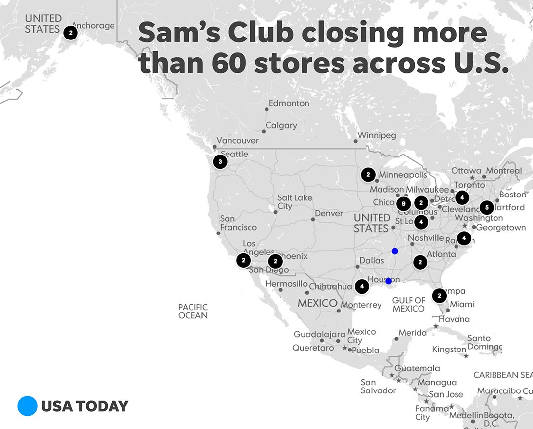 It said in another article that declining membership was the reason for the closing down of Sam's Clubs. People are buying the same quantity of products at http://WalMart.com and WalMart superstores without having to pay the membership fees