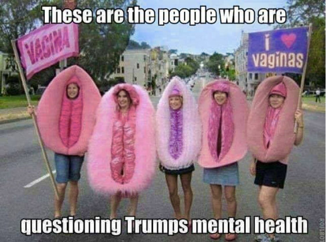 They dress in vagina costumes and wear headgear called a pussyhat.....and they say Trump is mentally unstable.