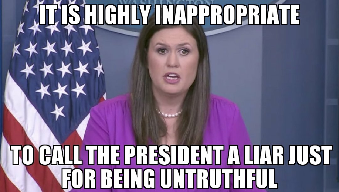 Sarah Sanders is a lying cow! The taxpayers have to pay for a hairdresser and makeup artist just to make her presentable to the public. The only time she smiles is when she is lying to the press in the name of her god, trump.