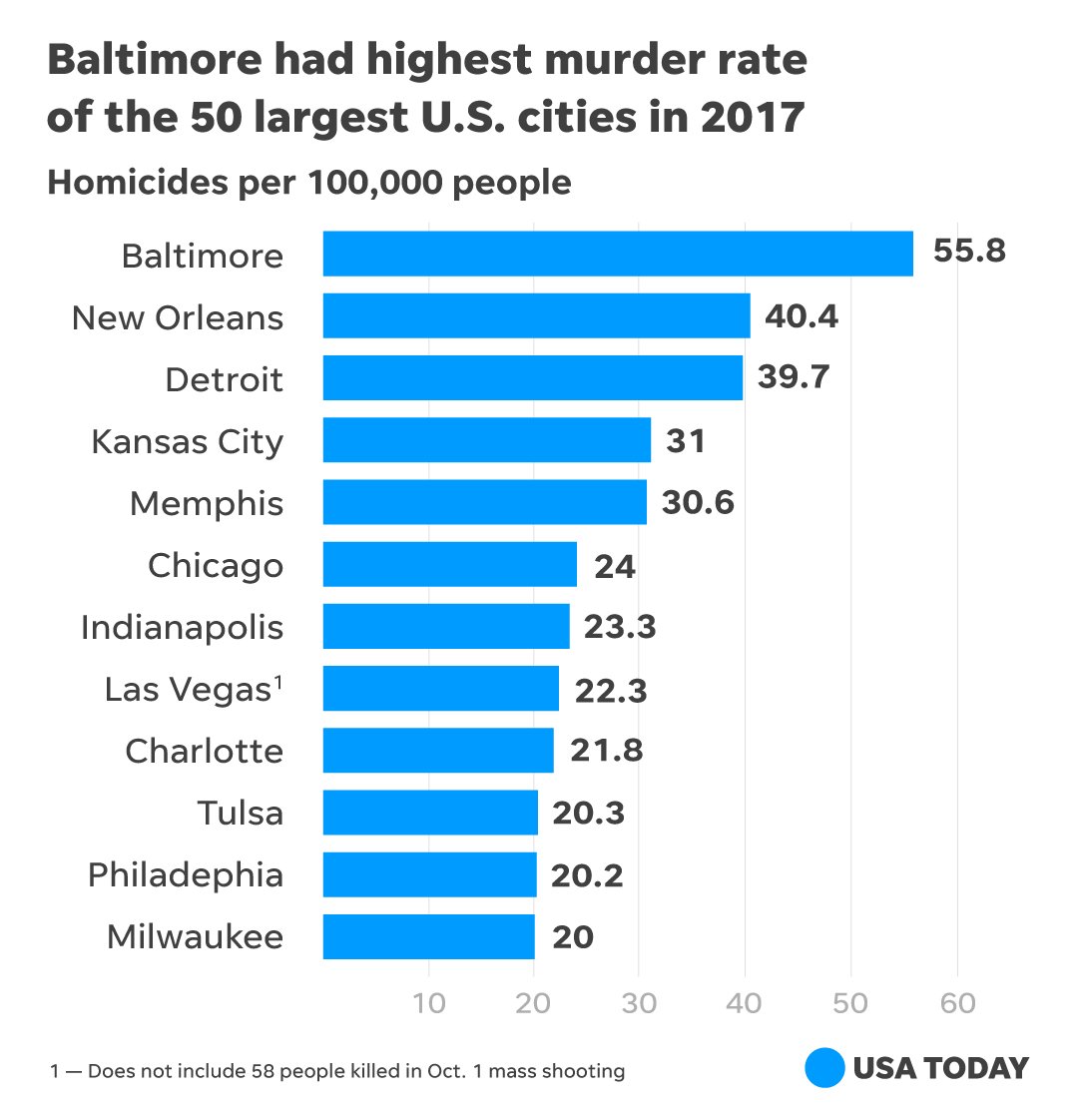 Wow! Really surprised to see that Chicago is not even in the top 5...considering it's the major deflection tactic of some many. "But what about Chicago?"