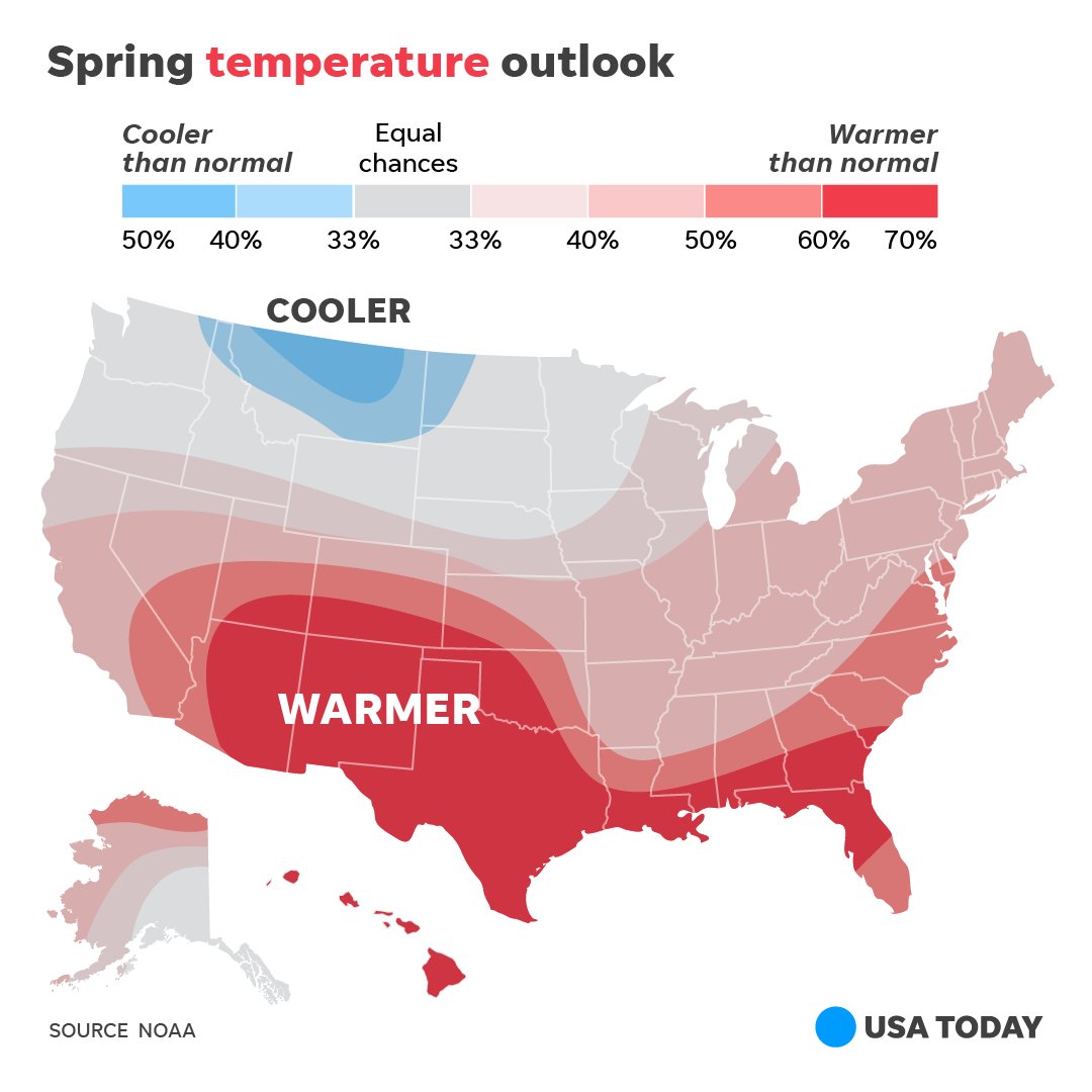 Spring weather forecast: Warmth will come, but it will take a while. https://usat.ly/2IpFxA6 pic.twitter.com/W5J83dXcGK