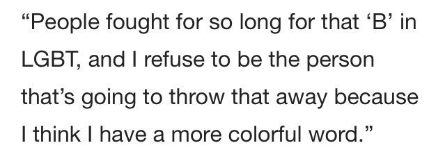 @USATODAY thank you for educating people about the different labels - you got this explanation 100% correct! And thank you for the visibility for underrepresented and often misrepresented groups. Bisexuals are 52% of the LGBT community!