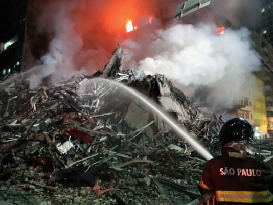 An abandoned building occupied by squatters in São Paulo has caught fire and collapsed, sending chunks of fiery debris crashing into neighboring buildings and surrounding streets. https://usat.ly/2HFONDk  (Photo: EPA-EFE)pic.twitter.com/6Wgk9td5Qp