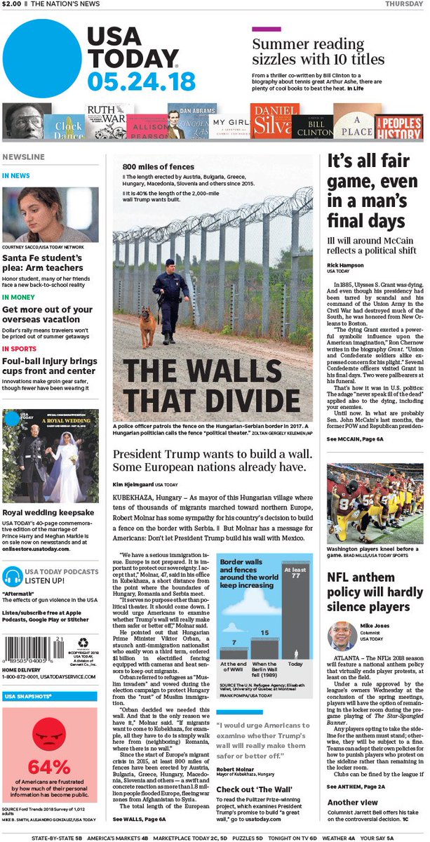 On today's #frontpage: European nations have border wall that's 40% as long as the one proposed by Trump; Ill will around John McCain reflects a political shiftpic.twitter.com/IipoeI9LmX