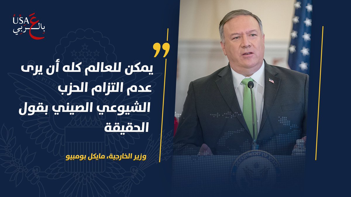 @StateDept: وزير الخارجية مايكل بومبيو عن هونغ كونغ: يمكن للعالم كله أن يرى عدم التزام الحزب الشيوعي الصيني بقول الحقيقة أو الوعود التي قدمها لشعب هونغ كونغ بأنه سيكون أمامهم 50 عامًا ليعيشون تحت ظل نظام مختلف، فهو يستمر في الكذب عليهمpic.twitter.com/zmG7wmikDm