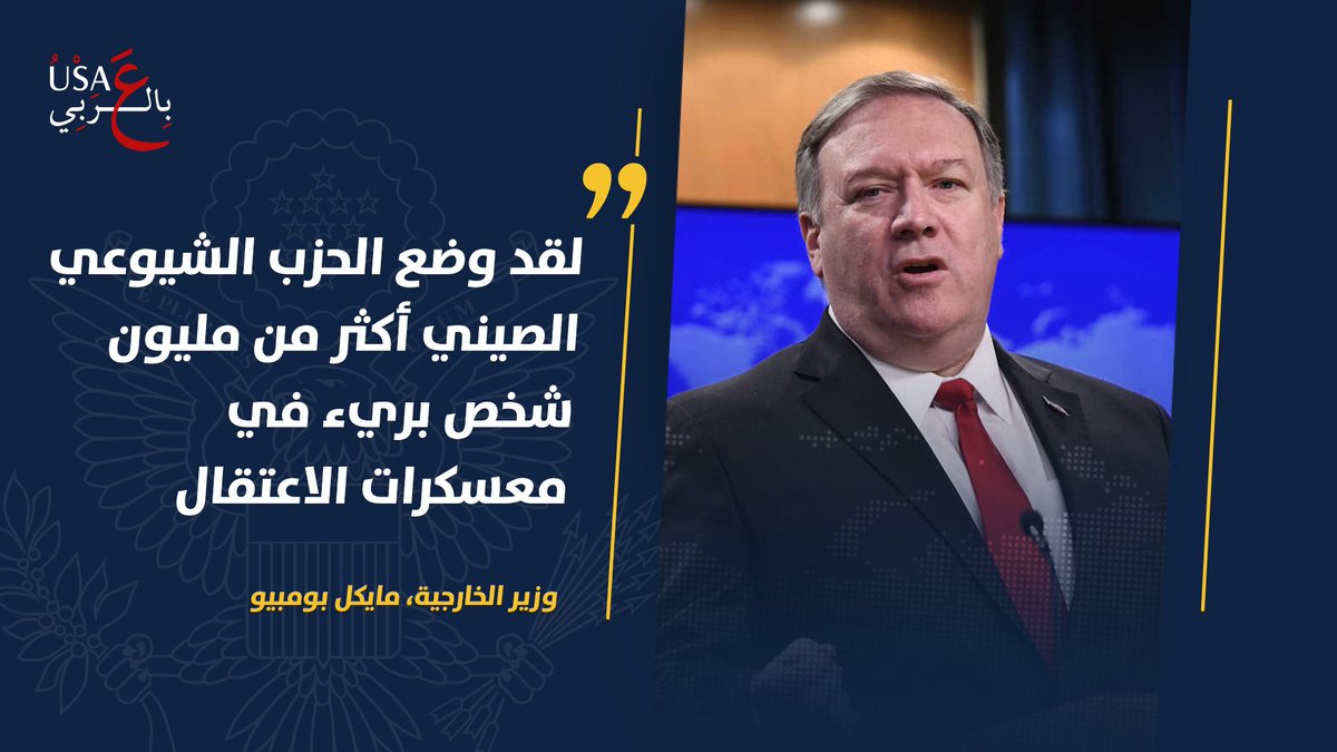@StateDept: وزير الخارجية مايكل بومبيو: لقد وضع الحزب الشيوعي الصيني أكثر من مليون شخص بريء في معسكرات الاعتقال. لقد شنّ حربًا لا هوادة فيها على المعتقدات الدينية، حتى أنه أجبر المواطنين على عمليات الإجهاض والعقم. هذه هي وصمة القرن التي تبين حقيقة هذا النظام.pic.twitter.com/LdYWMtYGbO