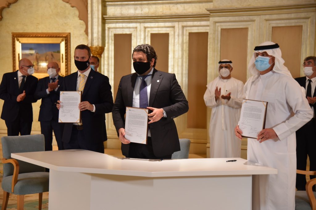 @USAinUAE: في ختام قمة الأعمال الأولى من نوعها الخاصة باتفاقيات إبراهيم، شهد وزير الخزانة ستيفن منوتشين توقيع مذكرة تفاهم بين#الإمارات و#إسرائيل، والتي من شأنها أن تدفع البلدين نحو أفاق جديدة من التعاون.@stevenmnuchin1pic.twitter.com/tIs9T29a29