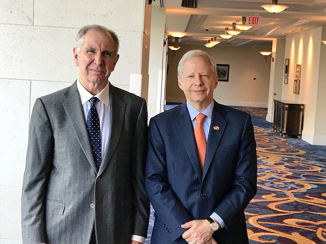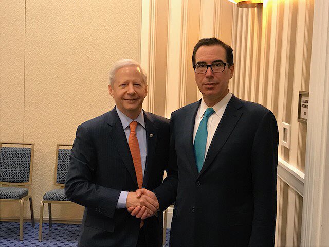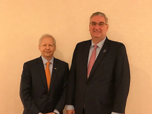 Great to meet with Secretary of the Treasury Mnuchin, Indiana Governor Holcomb, and Michael Young, Texas A&M President, on the sidelines of the 2018