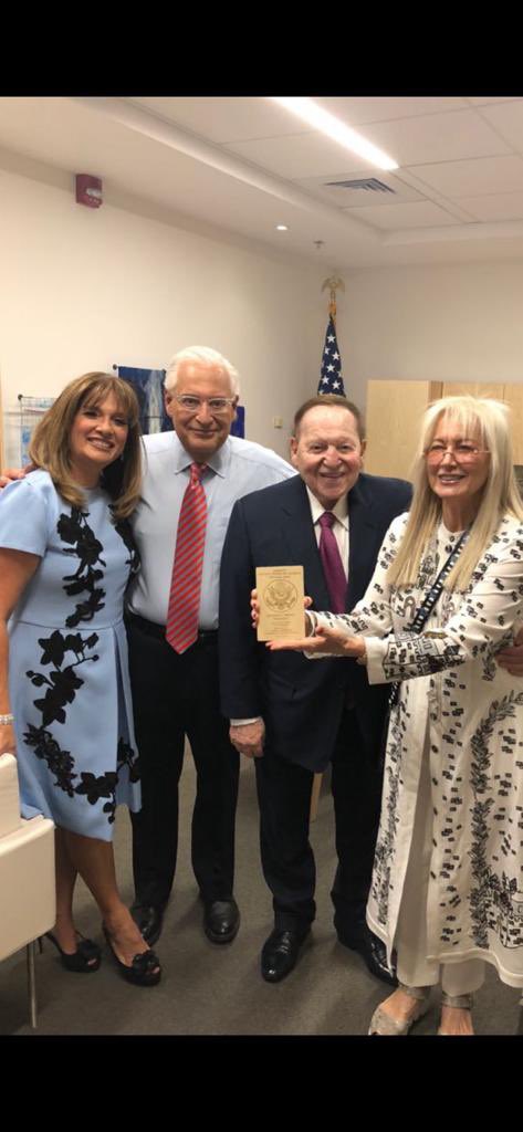 Tammy and I are heartbroken by the passing of Sheldon Adelson. He was the greatest of Jewish philanthropists with boundless commitment to his beloved wife Miriam and entire family. While blessed with vast wealth, he had exceptional humility and faith. No one will fill his shoes.pic.twitter.com/samPCJn3Fu