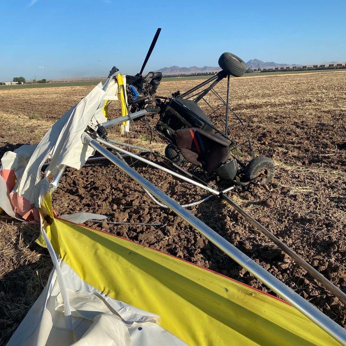 #YumaSector#USBP investigated an ultralight crash off I-8 and Winterhaven Drive this morning. The pilot was nowhere to be found and the ultralight, which had a welded metal basket consistent with contraband smuggling, was seized.#BorderSecurity is#NationalSecurity@CBPpic.twitter.com/7ICdTOYzTP
