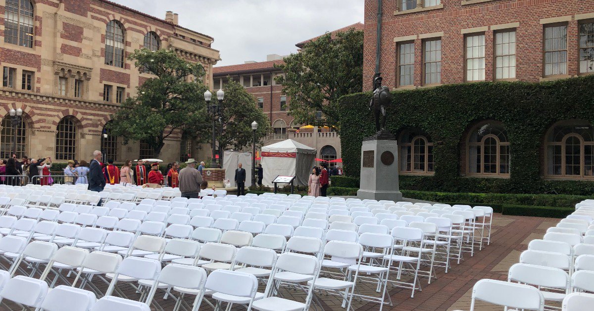 We're getting ready for the big day! The chairs are in place, the signage is in place, and even Tommy is ready for the 136th Commencement. See you tomorrow, #USCGrad!pic.twitter.com/zSOte1ZyiA